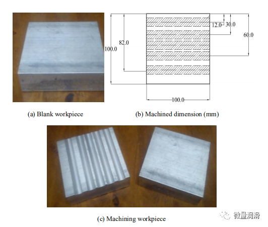 試樣工件材料為AA6061T6鋁合金,以其良好的切削加工性和連續的切屑性,是工業上應用廣泛的常用商業合金。工件尺寸100mm×100mm×30mm。實驗中使用了同一批工件。Si、Cu和Mg是合金的主要成分。用于計算材料去除率的合金密度為2712kg/m3。選擇了一種雙槽無涂層碳化鎢端磨機進行加工。實驗采用中心復合設計方法設計,并應用二次響應面模型。進行優化,尋找最佳設計。方差分析(ANOVA)用于驗證實驗數據的充分性。 實驗使用垂直數控銑削中心HAASVF6進行。試件上的毛坯和加工工件以及加工圖案如圖1所示。在機器上設置工件如圖2所示。
